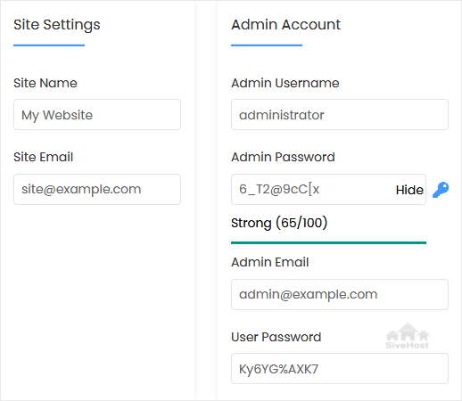• Site Email: Your e-mail address.